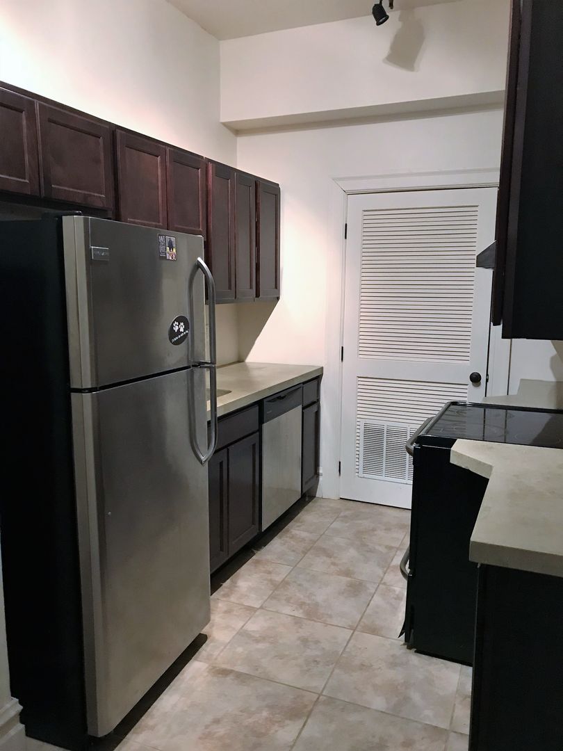 High ceilings and Brand new energy efficient large windows offer great natural lighting.Gorgeous hardwood floors throughout, new appliances, concrete countertops, central ac/heat.