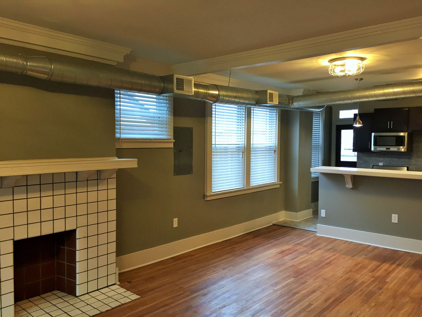 Completely updated Kitchen, Baths. New appliances, modern quartz countertops, industrial lighting, in unit laundry and central air/heat.